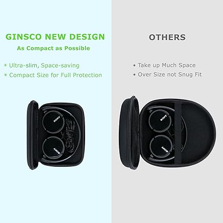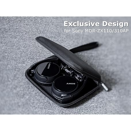 Ginsco Slim Protect Case Compatible with Sony ZX Series Wired On-Ear Headphones, MDR-ZX110 / MDRZX110AP / MDRZX110NC / MDR-ZX310AP, Hard Shell Travel Carrying Headphone Case (Black)