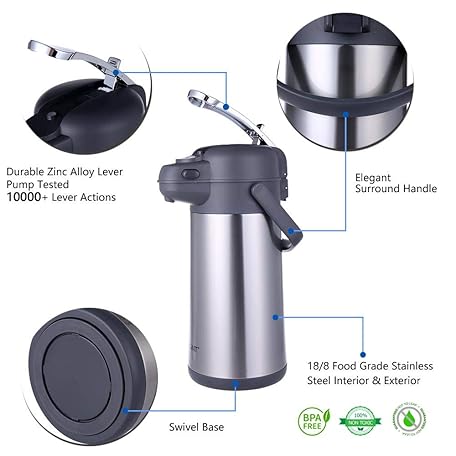 Thông tin sản phẩm GiNT 101 Oz Airpot Coffee Dispenser with Pump, Insulated Coffee Carafe for Hot Liquids, Stainless Steel Vacuum Insulated Pump Dispenser for Hot/Cold Beverages (3L)
