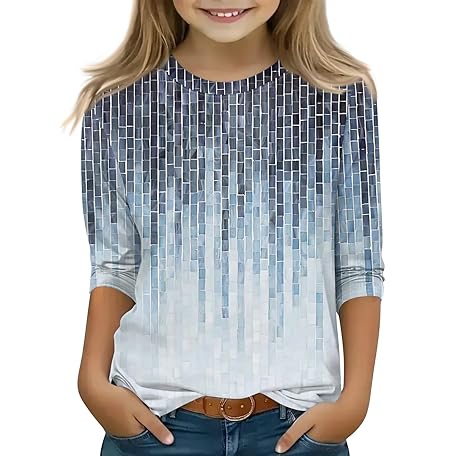 • Girls Long Sleeve Shirts Printed Crew Neck Pullover Tops 3/4 Sleeve Lightweight Blouses Fall Winter Sweatshirts