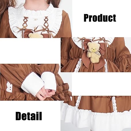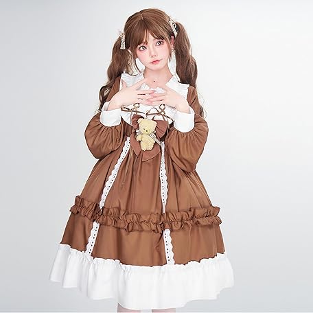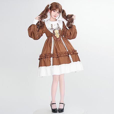 • Girl's Sweet Bear Bow Lolita Dress Cute Lace Ruffle Long Sleeve Chiffon Princess Dress Anime Party Fairytale Style Dresses