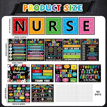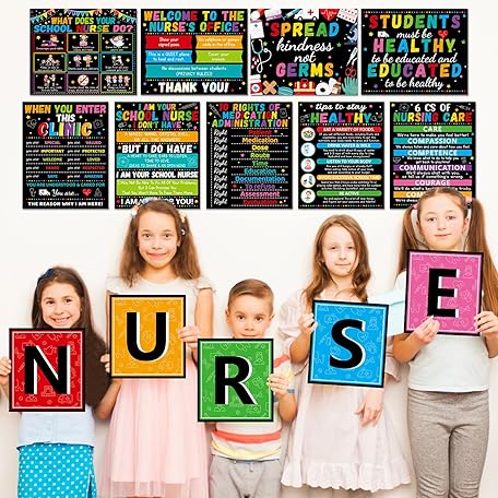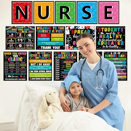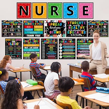 gisgfim 16PCS School Nurse Posters Nurse Health Office Bulletin Board Decorations School Nurses Pediatric Clinic Posters for Back to Schools Classroom Teacher Student Therapy Office Decor