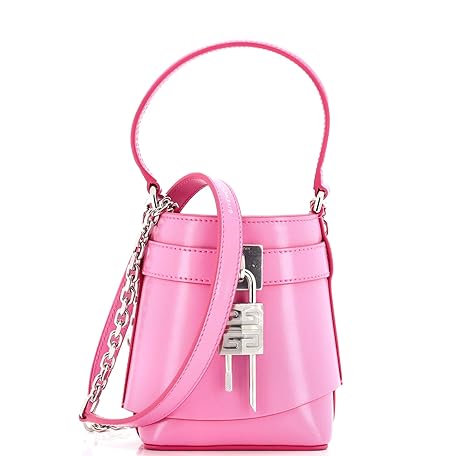 Givenchy Pre-Loved GV Shark Lock Bucket Bag Leather Micro, Pink