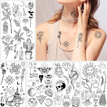 Sản phẩm GLARYYEARS 150+ Pattern Black Tiny Temporary Tattoo, Hands Face Halloween Tattoo Sticker for Men Women, Flower Space Moon Snake Designs Body Art on Arm Neck Shoulder Clavicle Waterproof đang được bán với giá ưu đãi là $7.6191 tại nước Mỹ.