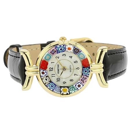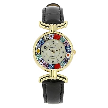 Sản phẩm Glass Of Venice Murano Glass Millefiori Watch Round Multicolor Gold-Tone - 1" Face with Black Band for Women - Handmade in Italy đang được bán với giá ưu đãi là $81.6955 tại nước Mỹ.