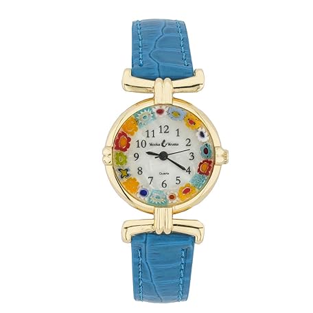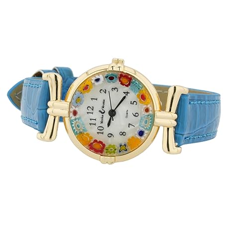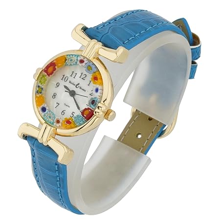 Sản phẩm Glass Of Venice Murano Glass Millefiori Watch Round Multicolor Gold-Tone - 1" Face with Light Blue Band for Women - Handmade in Italy đang được bán với giá ưu đãi là $87.1455 tại nước Mỹ.