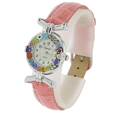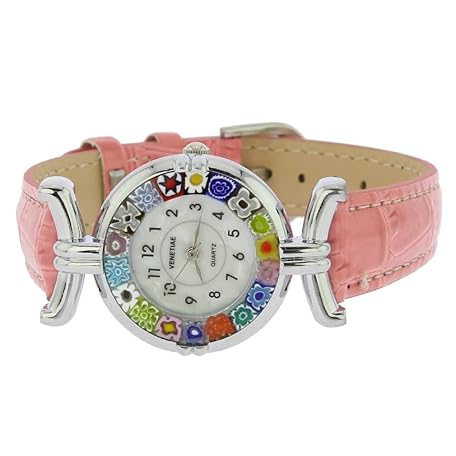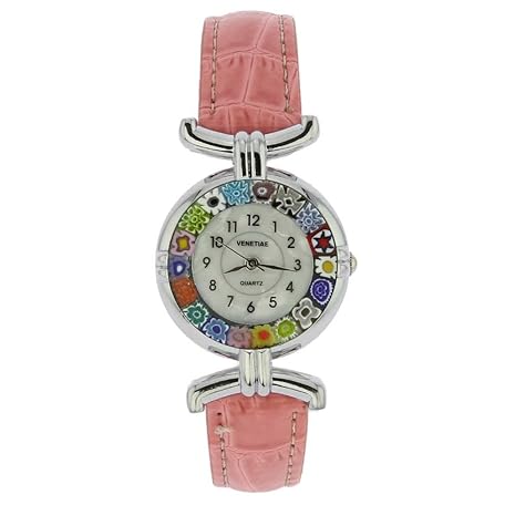 Sản phẩm Glass Of Venice Murano Glass Millefiori Watch Round Multicolor Silver-Tone - 1" Face with Pink Band for Women - Handmade in Italy đang được bán với giá ưu đãi là $81.6955 tại nước Mỹ.