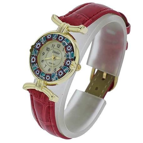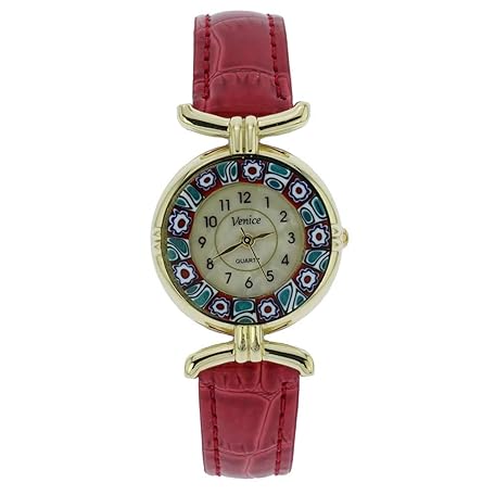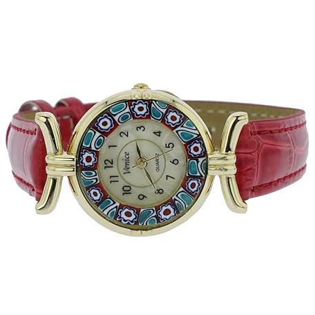 Glass Of Venice Murano Glass Millefiori Watch with Leather Band - Red