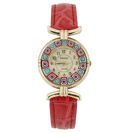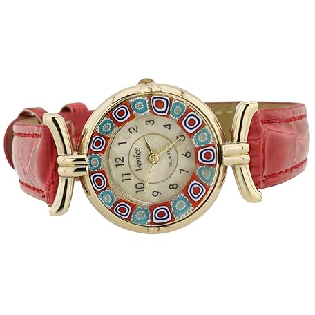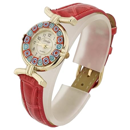 Glass Of Venice Murano Glass Millefiori Watch with Leather Band - Red