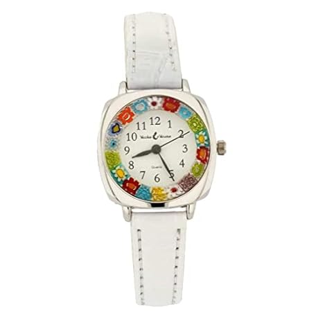 Glass Of Venice Murano Glass Watch Millefiori with Leather Band Square Case - White Multicolor
