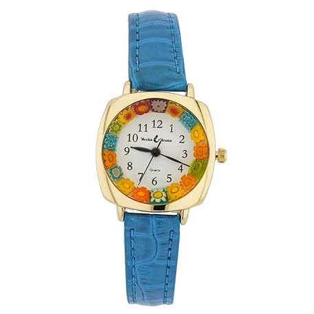 Sản phẩm GlassOfVenice Murano Glass Watch Millefiori with Leather Band Square Case - Blue Multicolor đang được bán với giá ưu đãi là $87.1455 tại nước Mỹ.