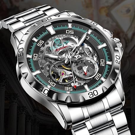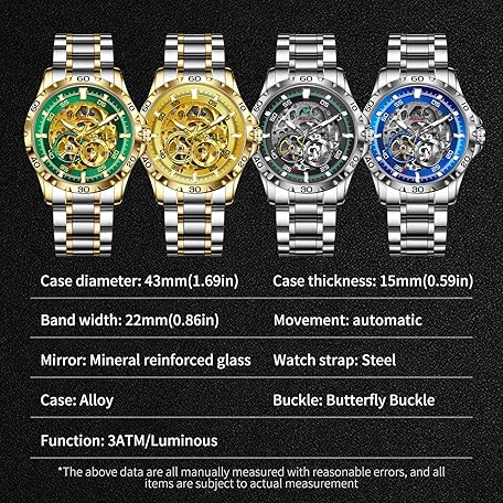 Thông tin sản phẩm GLENAW Automatic Watches for Men - Self-Winding Mechanical Movement, Skeleton Open Dial, 30 ATM Waterproof, with Stainless Steel Band, Wrist Watch, Without Battery