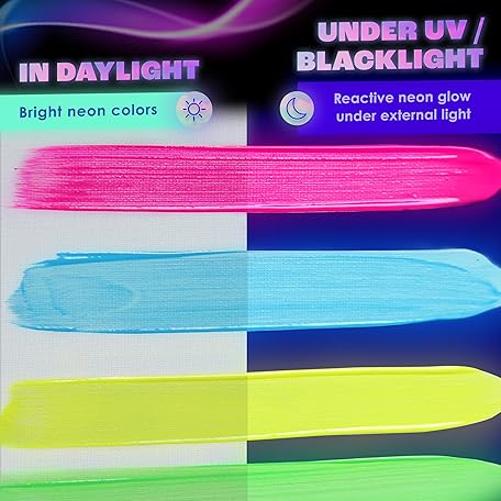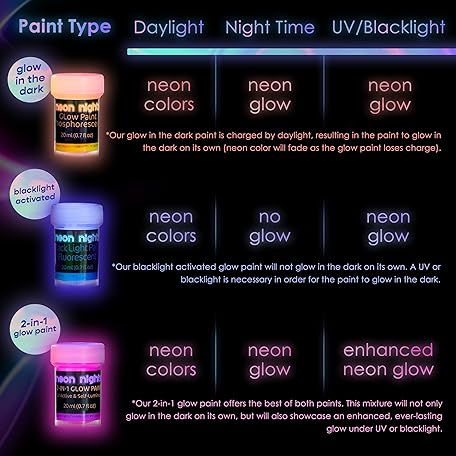 Thông tin sản phẩm Glow in the Dark Paint - Pack of 8 Multi-Surface UV Paint Set - UV & Blacklight Activated, Self Luminous, 20mL - Perfect for Halloween and Holiday Decor, Easter Egg Painting Decoration