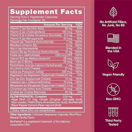 Sản phẩm Glow Prenatal Vitamins for Women – 20-in-1 Vital Nutrients for Healthy Pregnancy and Fetal Development – Folic Acid & Vegan DHA For Baby's Growth & A Comfortable Pregnancy – 60 Nourishing Capsules đang được bán với giá ưu đãi là $22.8791 tại nước Mỹ.