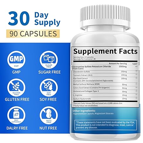 Sản phẩm Glucosamine Chondroitin Capsules 1500mg with MSM, Collagen, Turmeric - Joint Support Supplement for Men & Women, Joint Health Antioxidant Support, 90 Capsules đang được bán với giá ưu đãi là $26.1491 tại nước Mỹ.