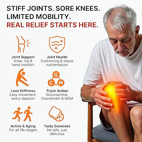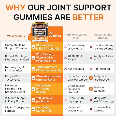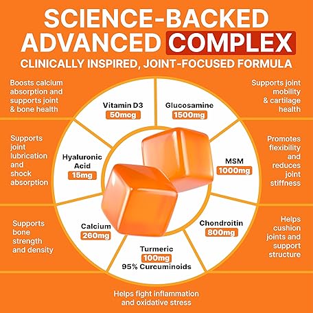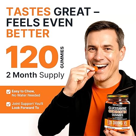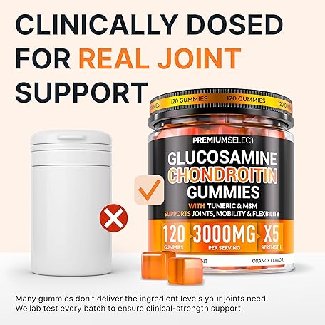 Glucosamine Chondroitin Gummies for Joint Support – 120 Glucosamine Gummies Extra Strength 3000mg with MSM, Turmeric, Calcium, Vitamin D3 – Sugar Free Vegan Adults Supplement – Flexibility & Mobility