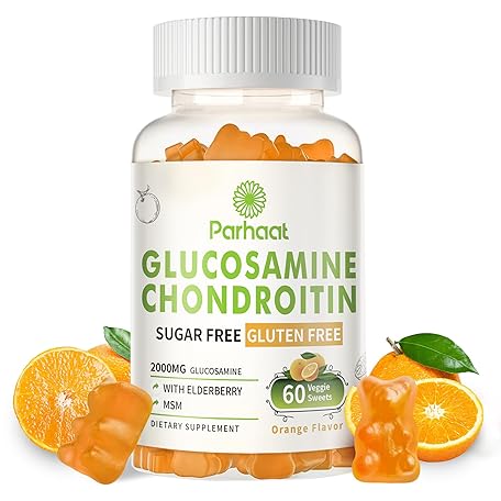 Glucosamine Chondroitin Gummies with MSM & Elderberry Extra Strength - Joint Support, Antioxidant Immune Support Supplement for Adults, Men & Women.Orange