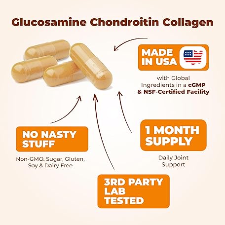 Sản phẩm Glucosamine Chondroitin MSM with Hydrolyzed Collagen Peptides - Joint Support Supplement with Quercetin, Bromelain & Boswellia Extract - Collagen pills for Hair Skin Nails - FSA Eligible 120 Caps đang được bán với giá ưu đãi là $28.3073 tại nước Mỹ.