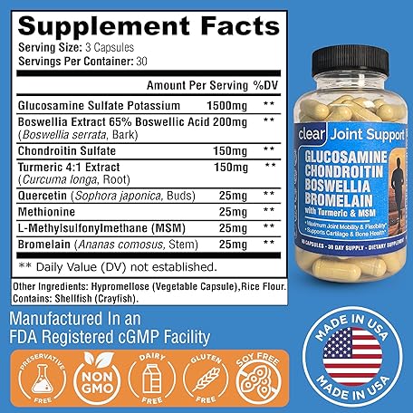 Thương hiệu Clear Probiotics là cái tên nổi tiếng được rất nhiều khách hàng trên thế giới chọn lựa. Với kiểu dáng đẹp mắt, sang trọng, sản phẩm Glucosamine Chondroitin MSM with Turmeric & Boswellia 90 Capsules | 8-in-1 Joint Support Supplement for Flexibility & Mobility | Joint Supplement for Men & Women – Support Back, Knee, Hips & Joints là sự lựa chọn hoàn hảo nếu bạn đang tìm mua một món cho riêng mình.