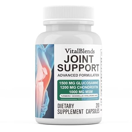 Thương hiệu VitalBlends là cái tên nổi tiếng được rất nhiều khách hàng trên thế giới chọn lựa. Với kiểu dáng đẹp mắt, sang trọng, sản phẩm Glucosamine Chondroitin Turmeric Msm Boswellia - Joint Support Supplement for Relief 210 Tablets for Bones, Back, Knees, Hands (210 Capsules) là sự lựa chọn hoàn hảo nếu bạn đang tìm mua một món cho riêng mình.