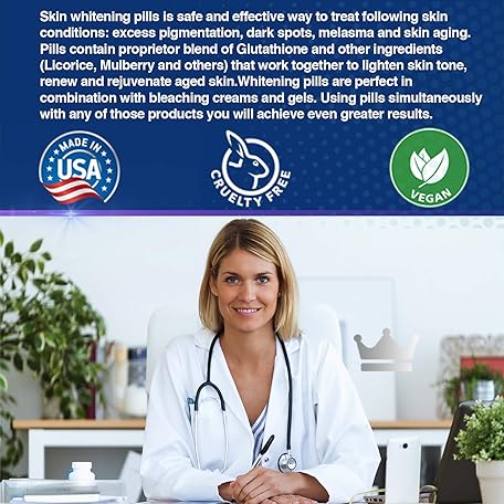 Thông tin sản phẩm Glutathione Whitening Pills - 120 Capsules 2000mg Glutathione - Effective Skin Lightening Supplement - Dark Spots, Melasma & Acne Scar Remover, Hyperpigmentation Treatment - Anti-Aging Antioxidant