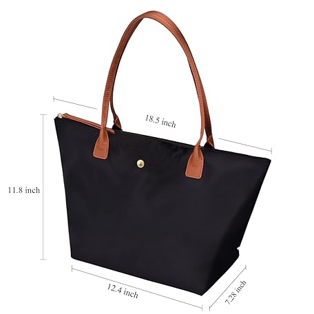 Thông tin sản phẩm GM LIKKIE Shoulder Tote Bag for Women, Nylon Top-Handle Purse, Foldable Weekend Hobo Handbag (Black2)