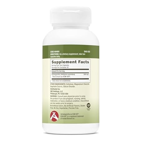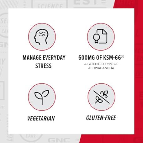 Thông tin sản phẩm GNC Herbal Plus Ashwagandha 600mg Supplement, Clinical Strength, Vegetarian, Stress Relief Support, 30 Servings