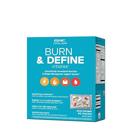 Thông tin sản phẩm GNC Total Lean Burn and Define VitaPak Program for Men & Women, 5-in-1 Pack for Energy, Weight Management, Calorie Burn, Immune Health, Water Balance, 30 Servings