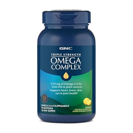 Thông tin sản phẩm GNC Triple Strength Omega Complex Omega 3, 6, 9 Supplement, 1725mg, Lemon Flavor, Supports Heart, Brain, Skin, Eye and Joint Health, 90 Softgels