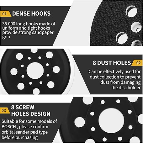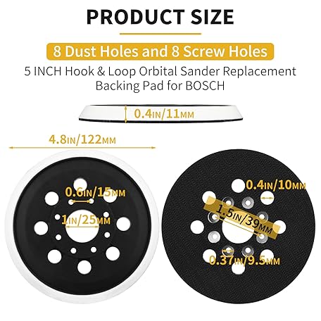 Thông tin sản phẩm Gnellkoor 2PCS 5" Hook & Loop Replacement Sander Pad RS034 & RS035 Compatible with Bosch Random Orbital Sander ROS20 ROS20VS ROS20VSC ROS20VSK GEX12V GEX18V ROS10, 5 Inch 8 holes Hard Sand Backing Pad