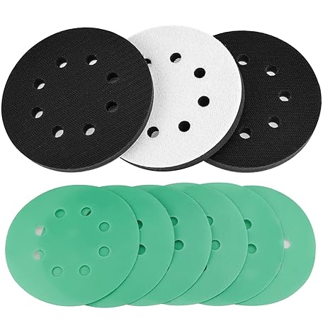 • Gnellkoor Foam Sanding Pads for Orbital Sander - 3PCS 5 Inch 8 Holes Interface Hook and Loop Surfprep Pad With 6PCS Festool Sandpapers