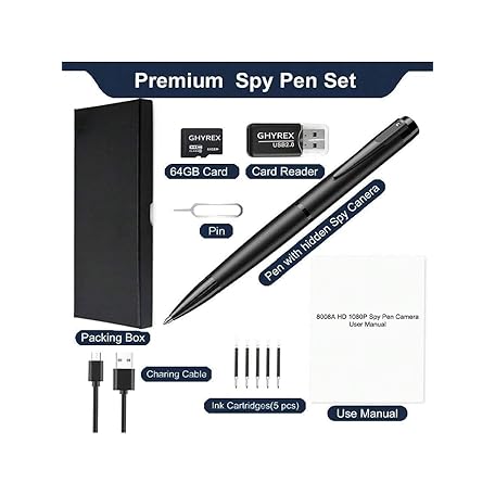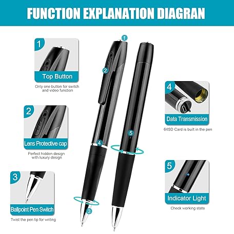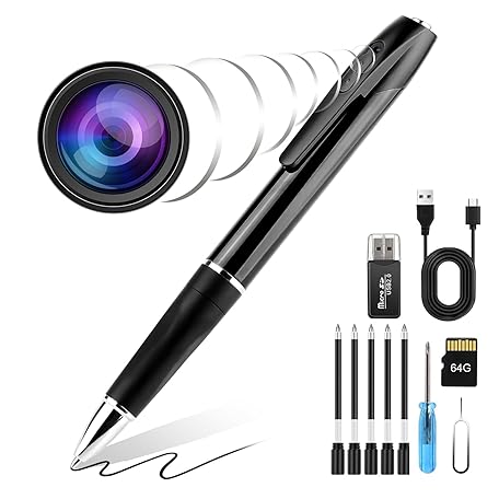 GNLHZO 1080P Mini Pen with Video- One Button Surveillance, 64GB Nany Camera Invisible Body Cam, Taking Photo Ideal for Home Security