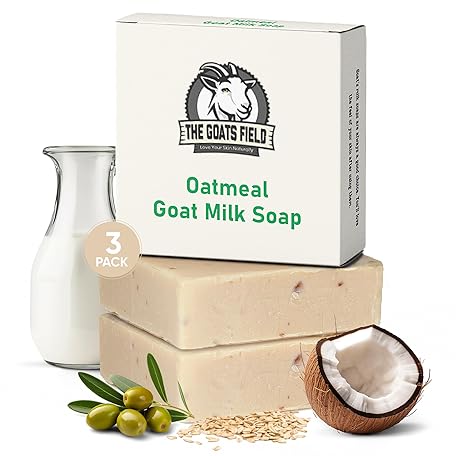 Goat Field Goat Milk Soap Bar - Handmade, Organic Bath Soap for All Skin Types with Shea Butter & Natural Oils - Ideal as Body Wash and Face Wash - Amish Farm Inspired - Oatmeal - 5oz Each, 3-Pack