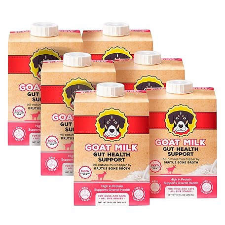 Goat Milk by Brutus Broth Meal Topper for Dogs and Cats – Formulated for Digestive Support & Moisture, Low-Lactose, Contains Natural Nutrients and Enzymes (Pack of 6)