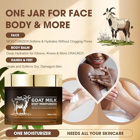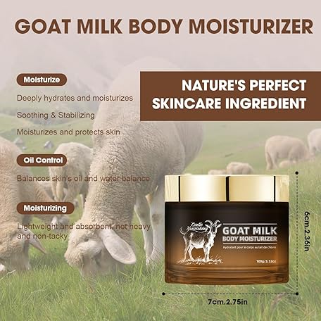 Goat Milk Lotion - Whipped Body Butter Cream with Goat Milk - Deeply Moisturizes, Softens Skin - Natural & Gentle for All Skin Types, 3.53 oz