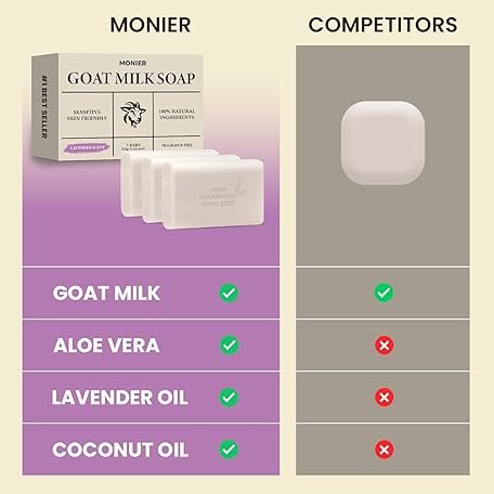 Thương hiệu MONIER là cái tên nổi tiếng được rất nhiều khách hàng trên thế giới chọn lựa. Với kiểu dáng đẹp mắt, sang trọng, sản phẩm Goat Milk Soap Bar For Dry & Sensitive Skin - 100% Natural & Organic Skin Care - Enriched with Shea Butter - Use on Face, Body & Hands - For Men, Women, Kids & Baby (Lavender, 3 Pack) là sự lựa chọn hoàn hảo nếu bạn đang tìm mua một món cho riêng mình.