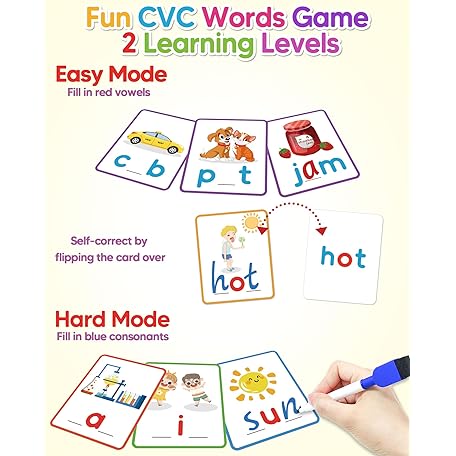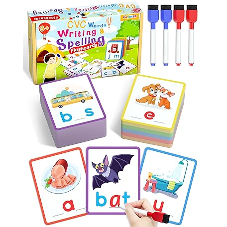Thông tin sản phẩm Gojmzo CVC Word Writing & Spelling Flash Cards, Preschool Learning Toddler Activities, Kindergarten Homeschool Supplies, Sight Words Reading Game, Montessori Educational Toys for 3 4 5 6 Year Old Kids