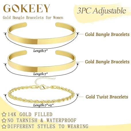 Thương hiệu Gokeey là cái tên nổi tiếng được rất nhiều khách hàng trên thế giới chọn lựa. Với kiểu dáng đẹp mắt, sang trọng, sản phẩm Gokeey Gold Bracelets for Women Non Tarnish Dainty 14K Gold Plated Bangle Cuff Bracelets Stack for Women,Waterproof Stackable Bracelet Gold Jewelry Trendy Gifts Adjustable là sự lựa chọn hoàn hảo nếu bạn đang tìm mua một món cho riêng mình.
