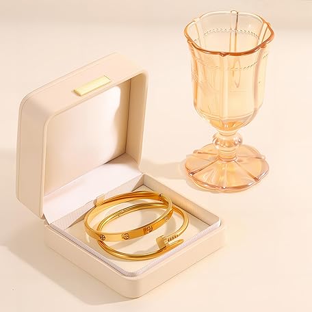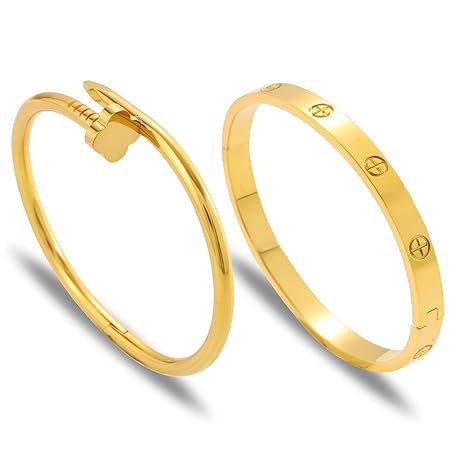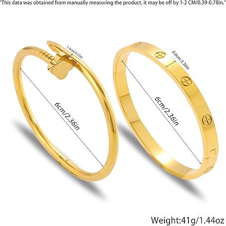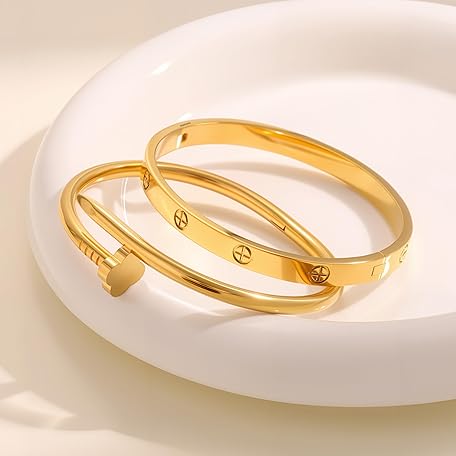 Thông tin sản phẩm Gold Clover Bracelets for Women - Stackable Stainless Steel Nail Bracelet, Friendship & Love Bangle - Trendy Jewelry Set, Ideal Birthday Gift