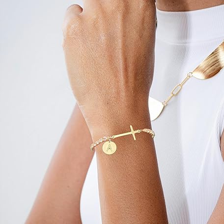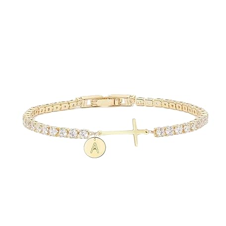Sản phẩm Gold Cross Bracelets for Women - 14K Gold Plated 3mm Cubic Zirconia Classic Tennis Bracelet Dainty Initial Bracelet Letter A-Z Charm for Religious Christian Gifts Women Trendy Jewelry Gifts đang được bán với giá ưu đãi là $14.1591 tại nước Mỹ.