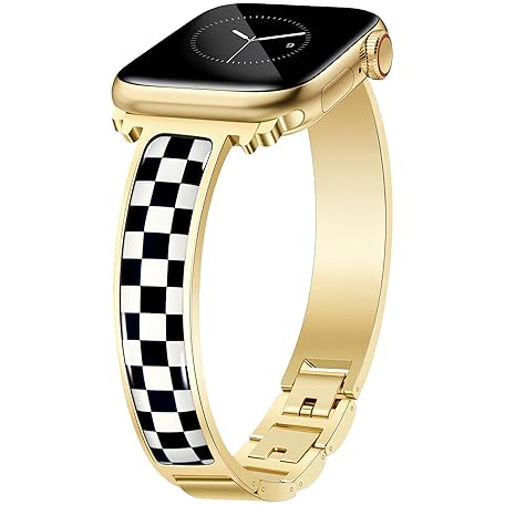 Gold Slim Watch Bands for Women Compatible with Apple Watch 42mm(S3/2/1) 44mm 45mm 46mm 49mm Designer Dressy Bracelet Thin Metal Strap Adjustable for iWatch Series 11/10/9/8/7/6/5/4/SE 3/2/1