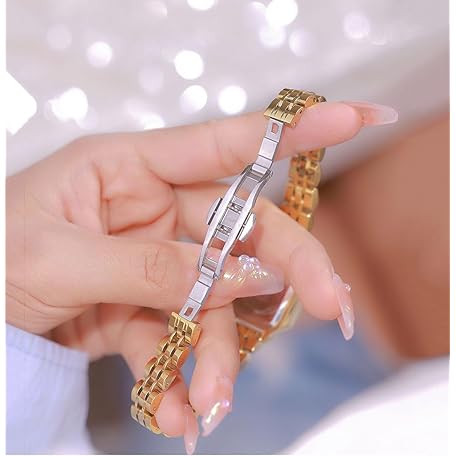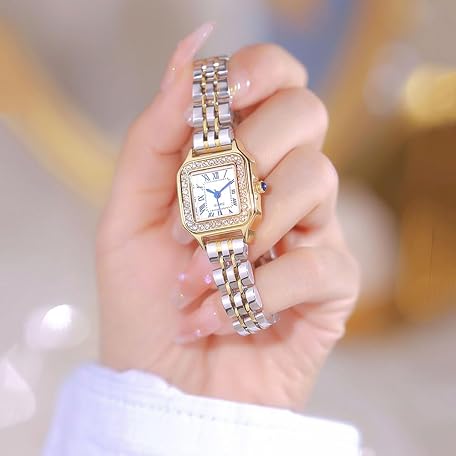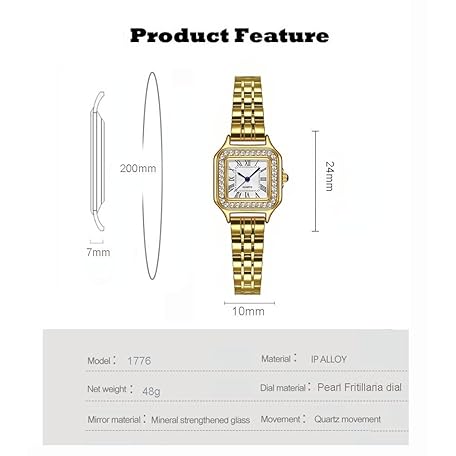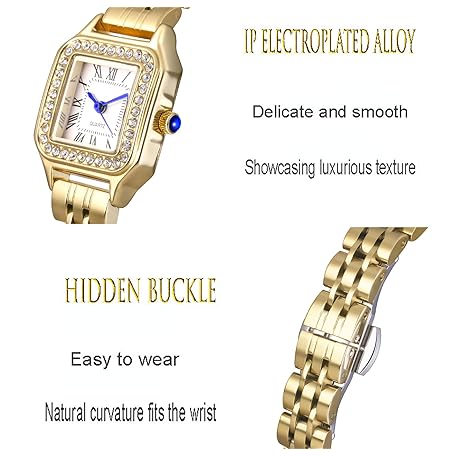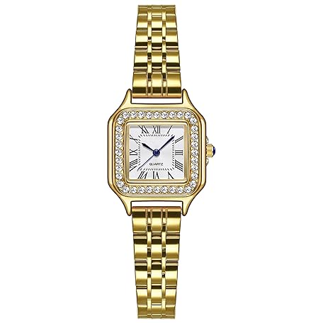 • Gold Watches for Women Dainty Square Vintage Watches Luxury Ladies Diamond Accent Dress Stainless Steel Bracelet Watch Analog Quartz Waterproof Watch
