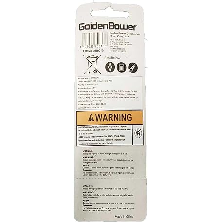 Sản phẩm Golden Power LR920GH Alkaline Button Cell 1.5V Battery Hi-Pro Strongest Leak-Proof Performance,10 Count (Pack of 1) đang được bán với giá ưu đãi là $10.7801 tại nước Mỹ.