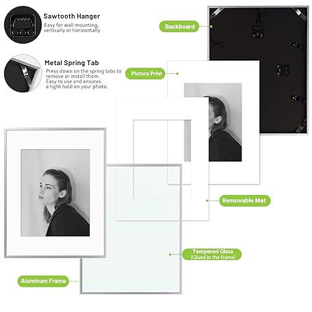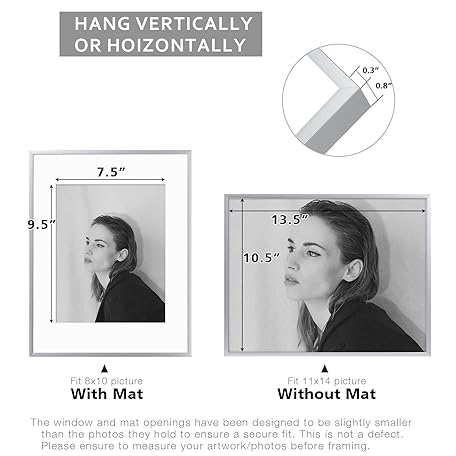 Golden State Art - 11x14 Aluminum Picture Frame - with Mat for 8x10 Photo or Without Mat for 11 x 14 Photo - Real Glass Cover - Simple and Elegant Decor for Wall Mounting - 1 Pack - Silver