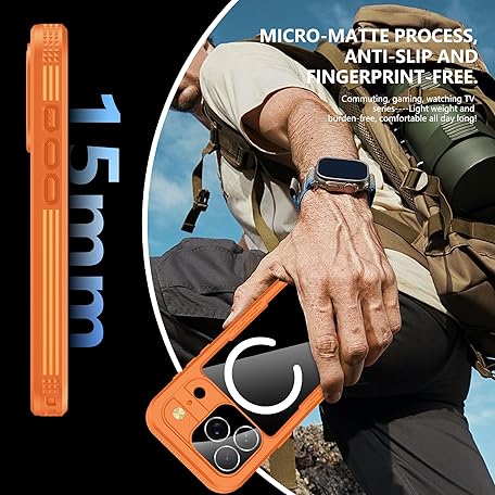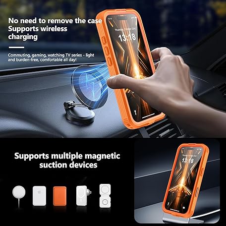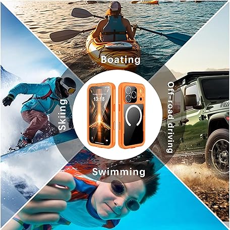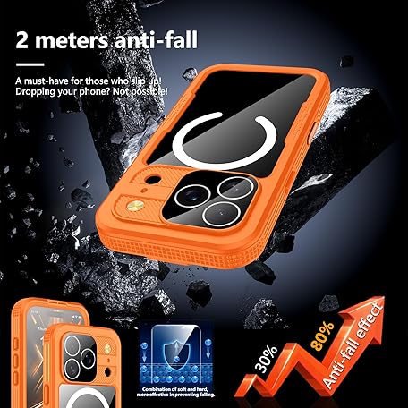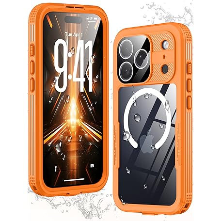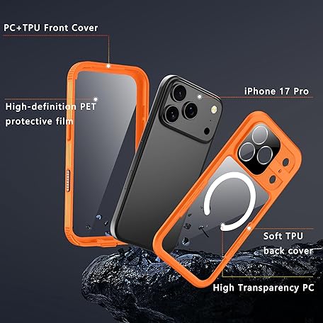 GOLDJU Magnetic for iPhone 17 Pro Case-Waterproof, Built-in Screen & Camera Protector-IP68 Underwater Full Body 16FT Military Dropproof Shockproof Case for 17 Pro 6.3''- Orange