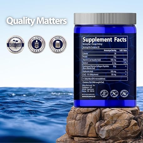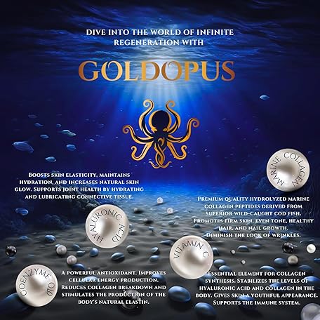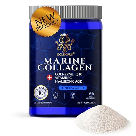 Thông tin sản phẩm GOLDOPUS Marine Collagen Peptides Powder with Hyaluronic Acid, Coenzyme Q10, Vitamin C - Promote Firm Skin, Strong Nails&Hair, Healthy Joints - Hydrolyzed Collagen from Atlantic Cod - 10g per Serving