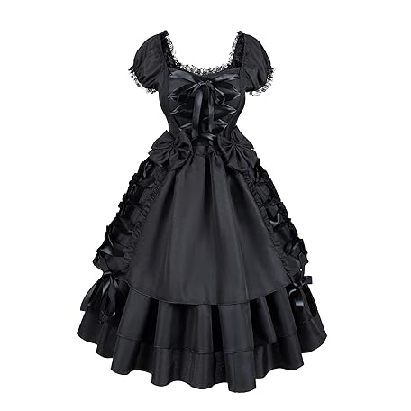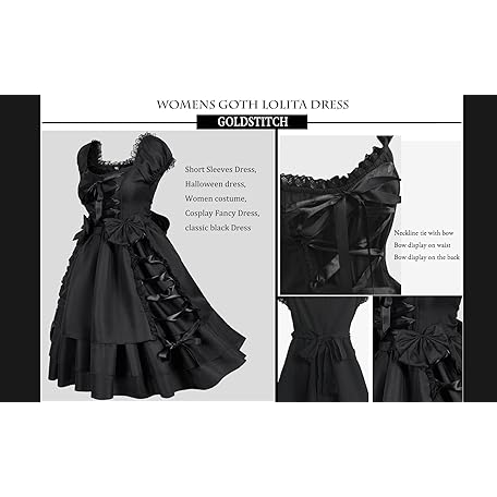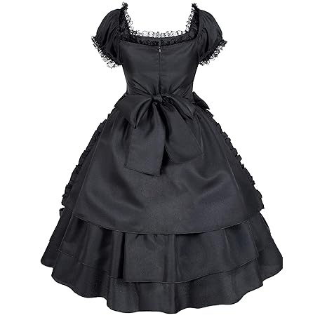 • GOLDSTITCH Womens Gothic Lolita Dress Classic Black Layered Lace-up Fancy Dress Costume