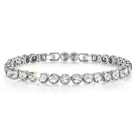 GONA CRYSTAL Birthstone Tennis Bracelet for Women – 14K Gold Plated Adjustable 6-7.5 Inch with Genuine Swarovski® Crystals, Hypoallergenic Handmade Jewelry Gift for Birthday, Wedding, Anniversary and Christmas