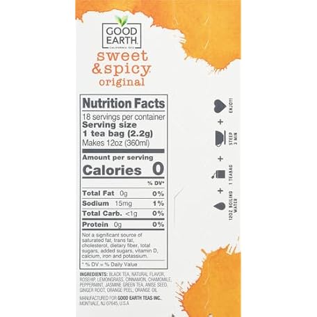 Good Earth Herbal & Black Tea, Sweet & Spicy, 18 Count Tea Bags