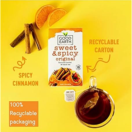 Thông tin sản phẩm Good Earth Herbal & Black Tea, Sweet & Spicy, 18 Count Tea Bags (Pack of 6) (Packaging May Vary)