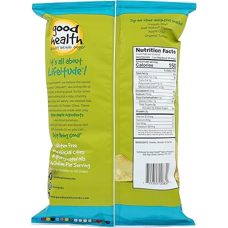 Sản phẩm Good Health Kettle Style Chips, Avocado Oil Sea Salt Chips, 5 Oz đang được bán với giá ưu đãi là $3.5861 tại nước Mỹ.
